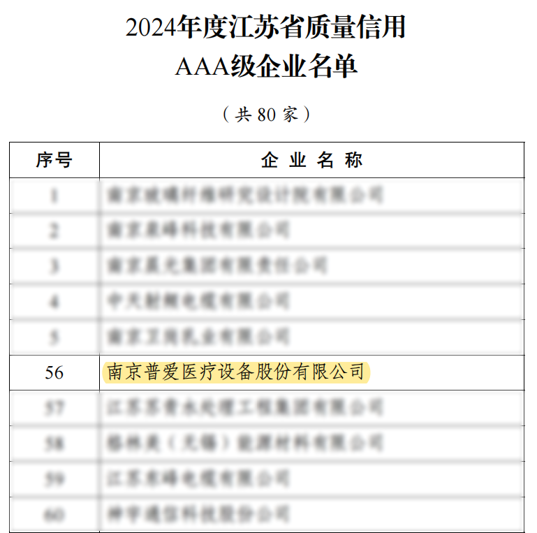 11月25日,江蘇省市場(chǎng)監(jiān)管局發(fā)布了《2024年度江蘇省質(zhì)量信用AAA級(jí)企業(yè)公示名單》,普愛(ài)醫(yī)療以優(yōu)秀的產(chǎn)品質(zhì)量、穩(wěn)定的運(yùn)營(yíng)能力及良好的社會(huì)責(zé)任實(shí)踐成功入選。