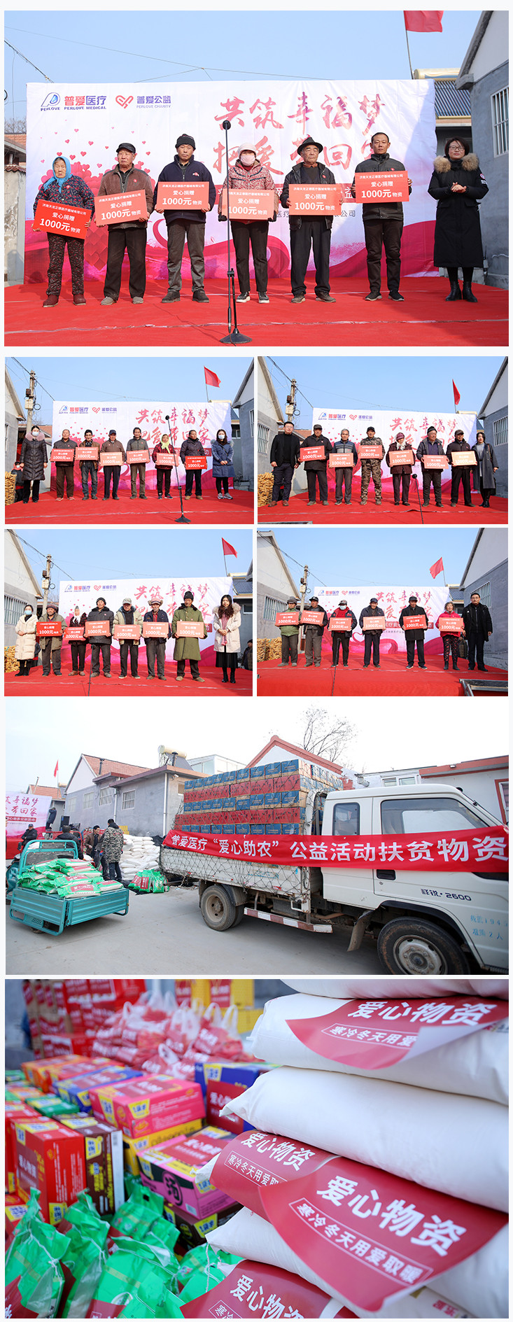 12月18日,普愛醫(yī)療攜手會(huì)員俱樂(lè)部成員在山東省萊州市柞村鎮(zhèn)大臺(tái)頭村舉辦“共筑幸福夢(mèng),把愛帶回家”社會(huì)公益助農(nóng)活動(dòng),為當(dāng)?shù)?0戶貧困家庭捐贈(zèng)生活物資,用善舉傳遞愛心,讓溫暖在寒冬延續(xù)。普愛醫(yī)療副總經(jīng)理趙政文先生、會(huì)員俱樂(lè)部成員代表、柞村鎮(zhèn)大臺(tái)頭村村委書記王京成先生出席了本次活動(dòng)。萊州市電視臺(tái)及萊州日?qǐng)?bào)等媒體對(duì)本次“愛心助農(nóng)”公益活動(dòng)進(jìn)行了現(xiàn)場(chǎng)采訪報(bào)道。