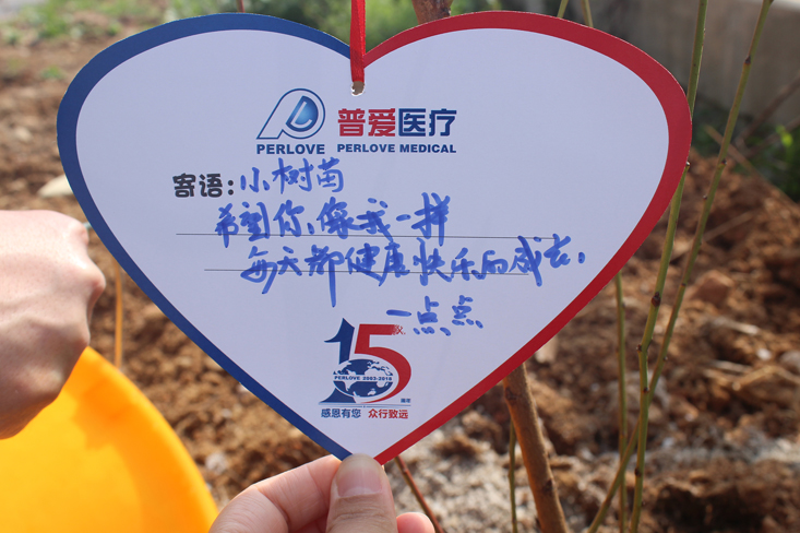每個家庭在親手種下的小樹苗上掛上了自己的心愿卡,種下希望,種下愛。